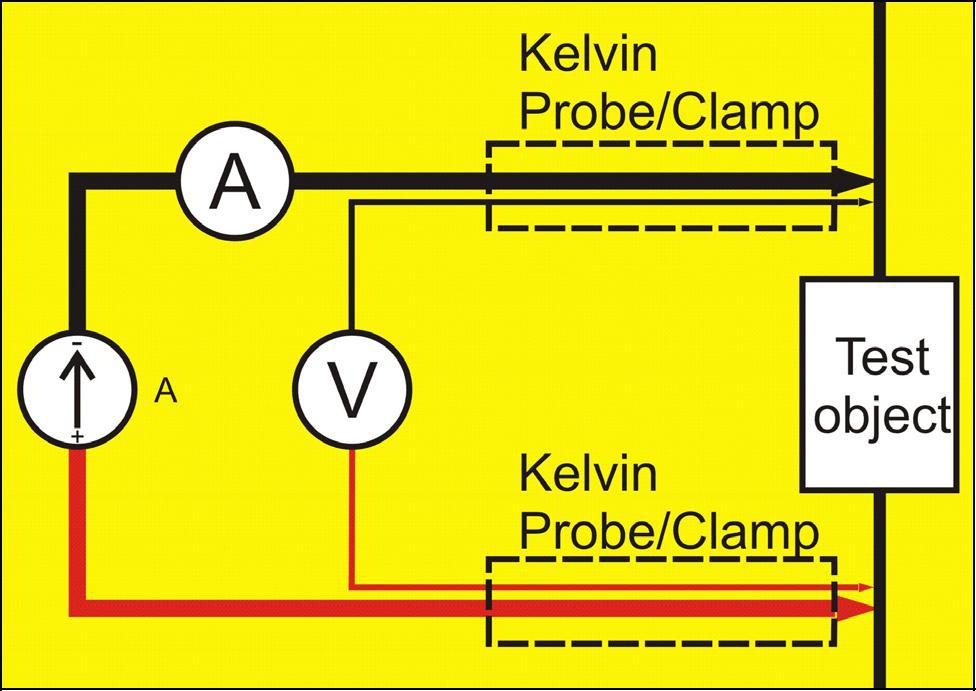 開爾文探頭(包含在BD-59090內(nèi))在4線開爾文測試中被使用。這是測試電阻連續(xù)性,確保所有接觸和導線電阻得到補償?shù)姆椒?,大大加強了測試的精度。每一個開爾文探頭裝有兩個末端,一個用于產(chǎn)生電流,另一個用于測量微弱的電壓存在