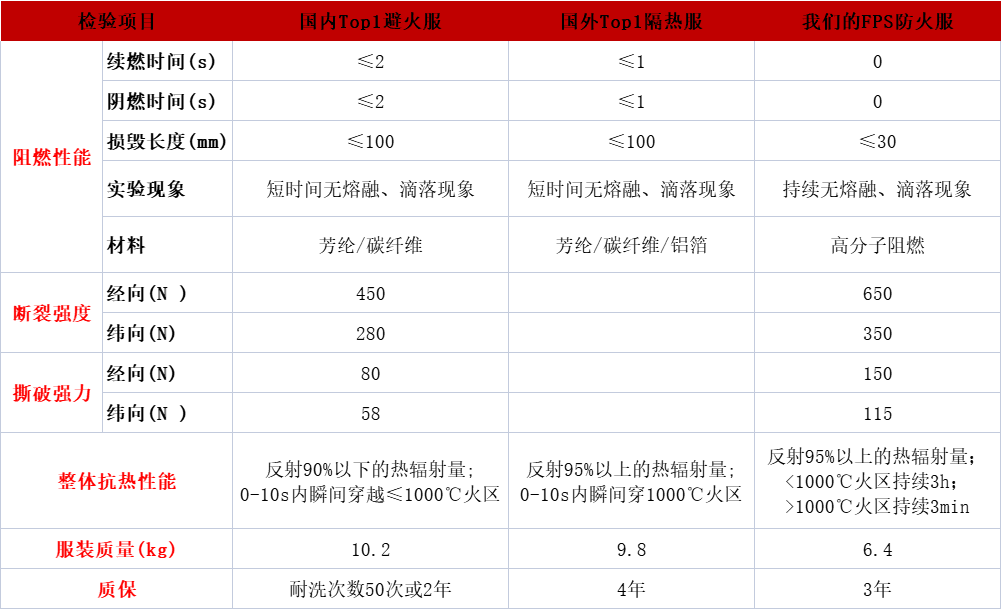 FPS防火服技術(shù)指標(biāo)遠(yuǎn)超*標(biāo)準(zhǔn)。