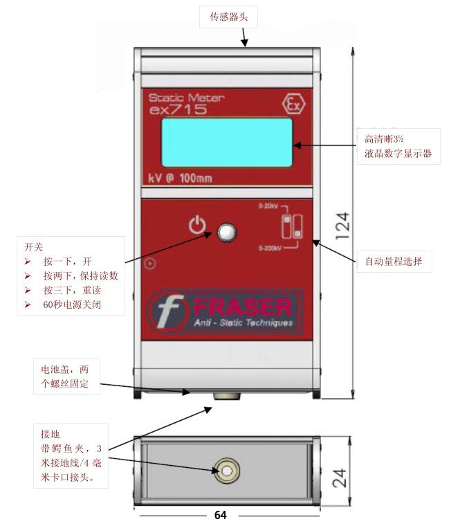 ?EX715用于測試工業(yè)現(xiàn)場靜電問題,獲危險區(qū)域使用的認證