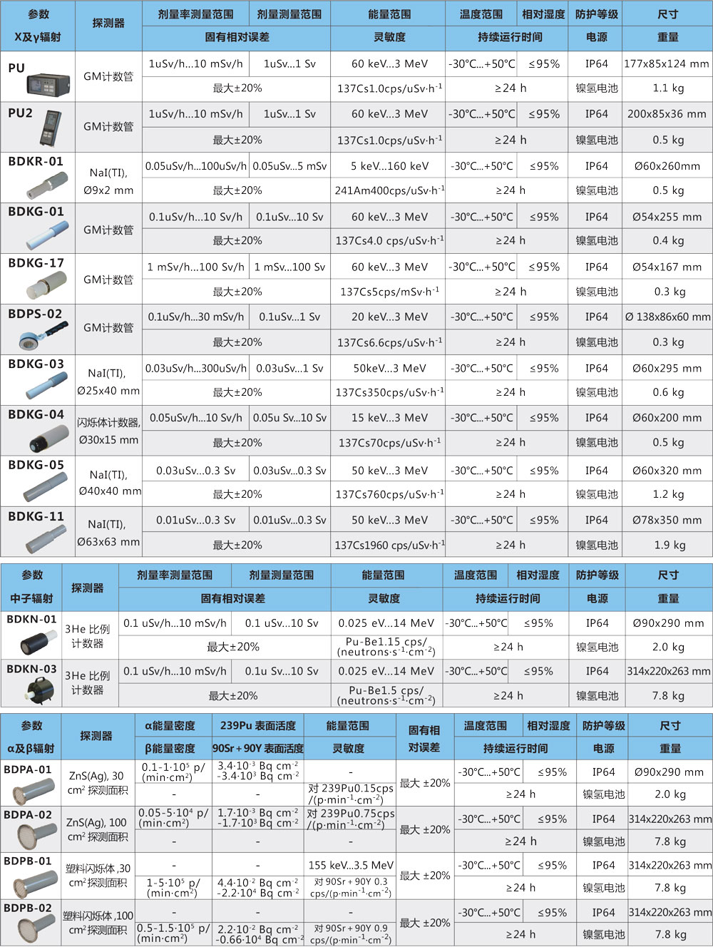 ?可測(cè)量多種射線α、β、γ、中子 和X 射線,并對(duì)這些射線進(jìn)行搜索