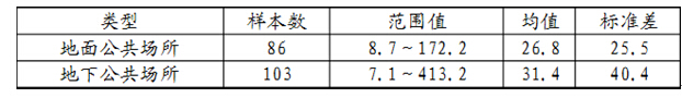 表1 北京市地面與地下公共場(chǎng)所平均氡濃度比較(Bq/m3)